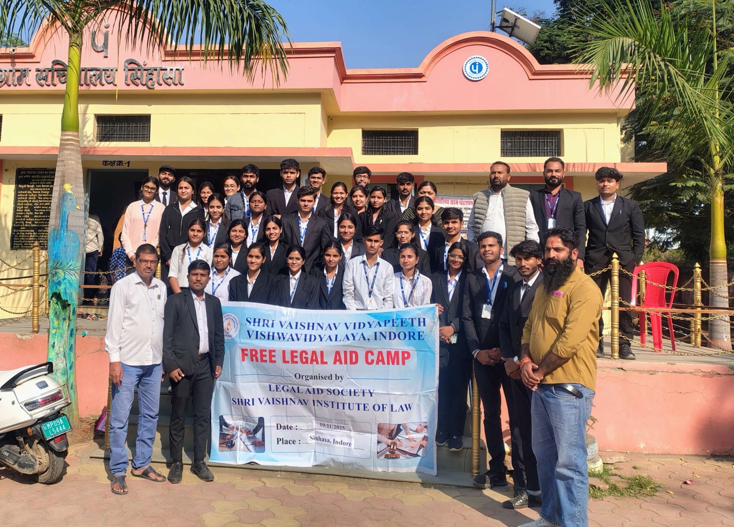 Shri Vaishnav Institute of Law, Shri Vaishnav Vidyapeeth Vishwavidyalaya, Indore, organized a Free Legal Aid Camp on 19 November 2025 at Village Sinhasa, Dhar Road, Indore. The primary objective of the camp was to promote international conventions, national regulations, and the directives of the Bar Council of India related to providing free legal services to underprivileged and marginalized sections of society.